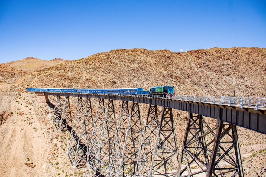 Es el tren de alta montaña más asombroso del mundo. Es un viaje que combina un primer tramo por carretera a través de la Quebrada del Toro con paradas fotográficas en puntos panorámicos, para luego embarcar, en la estación de San Antonio de los Cobres, en la mágica experiencia del tren a través de la Puna Salteña hasta llegar al famoso Viaducto La Polvorilla, que fue construido a 4.220 metros de altura sobre el nivel del mar, con 225 metros de largo en curva y con una altura máxima de 63 metros.