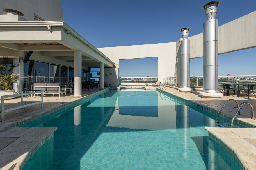 Intervención en el rooftop con piscina, bar y gimnasio.